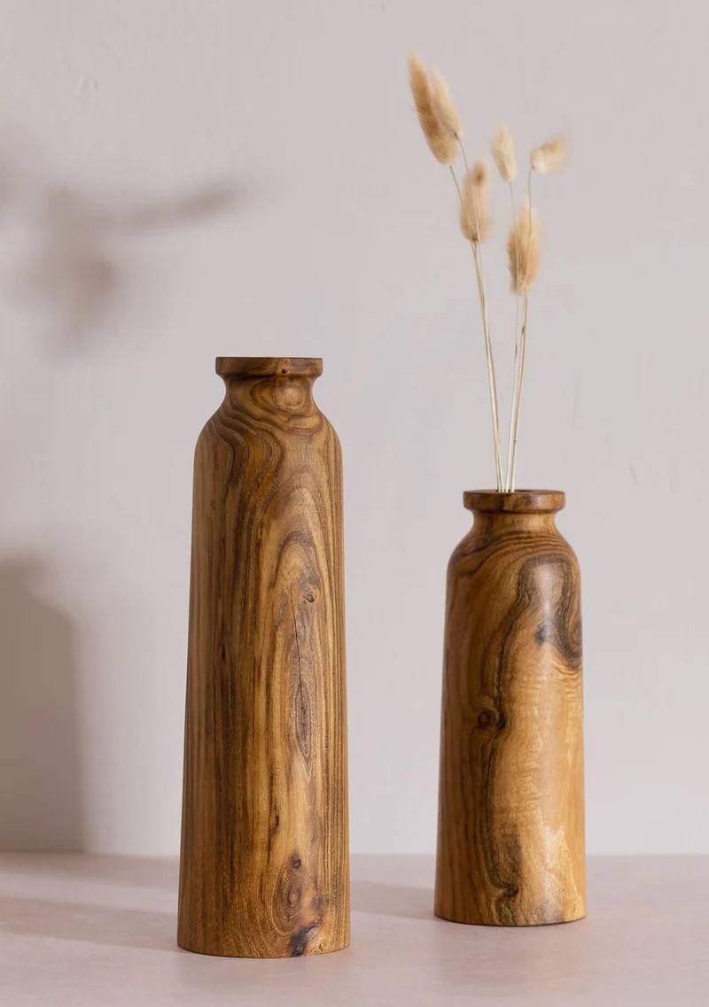 זוג אגרטלים גבוהים מעץ טבעי