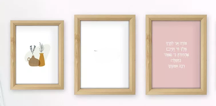 תמונות ממוסגרות בעיצוב בוהו שיק. מסגרות התמונות בעץ טבעי, התמונות בגווני הפסטל