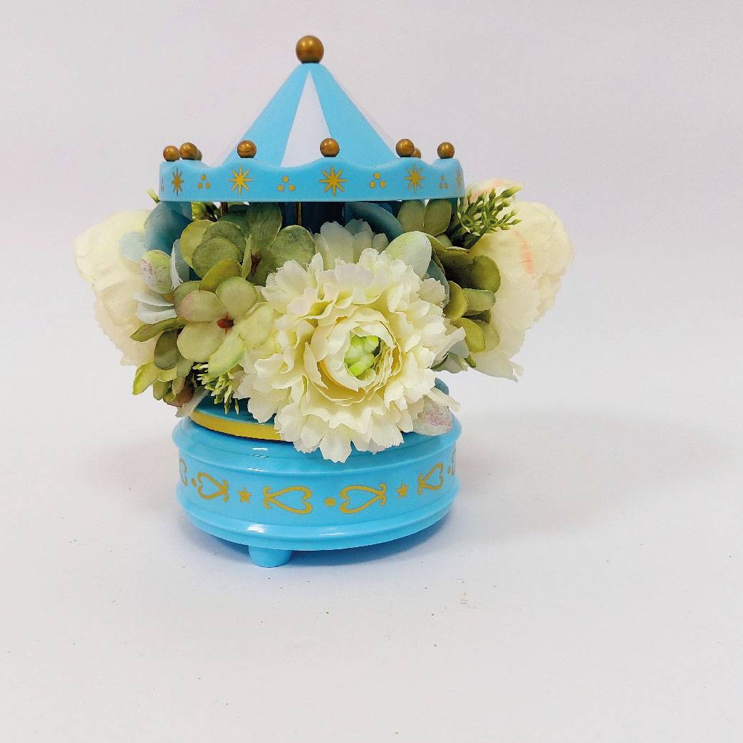עיצוב הקרוסלה בשילוב פרחים בגווני שמנת וירוק תפוח