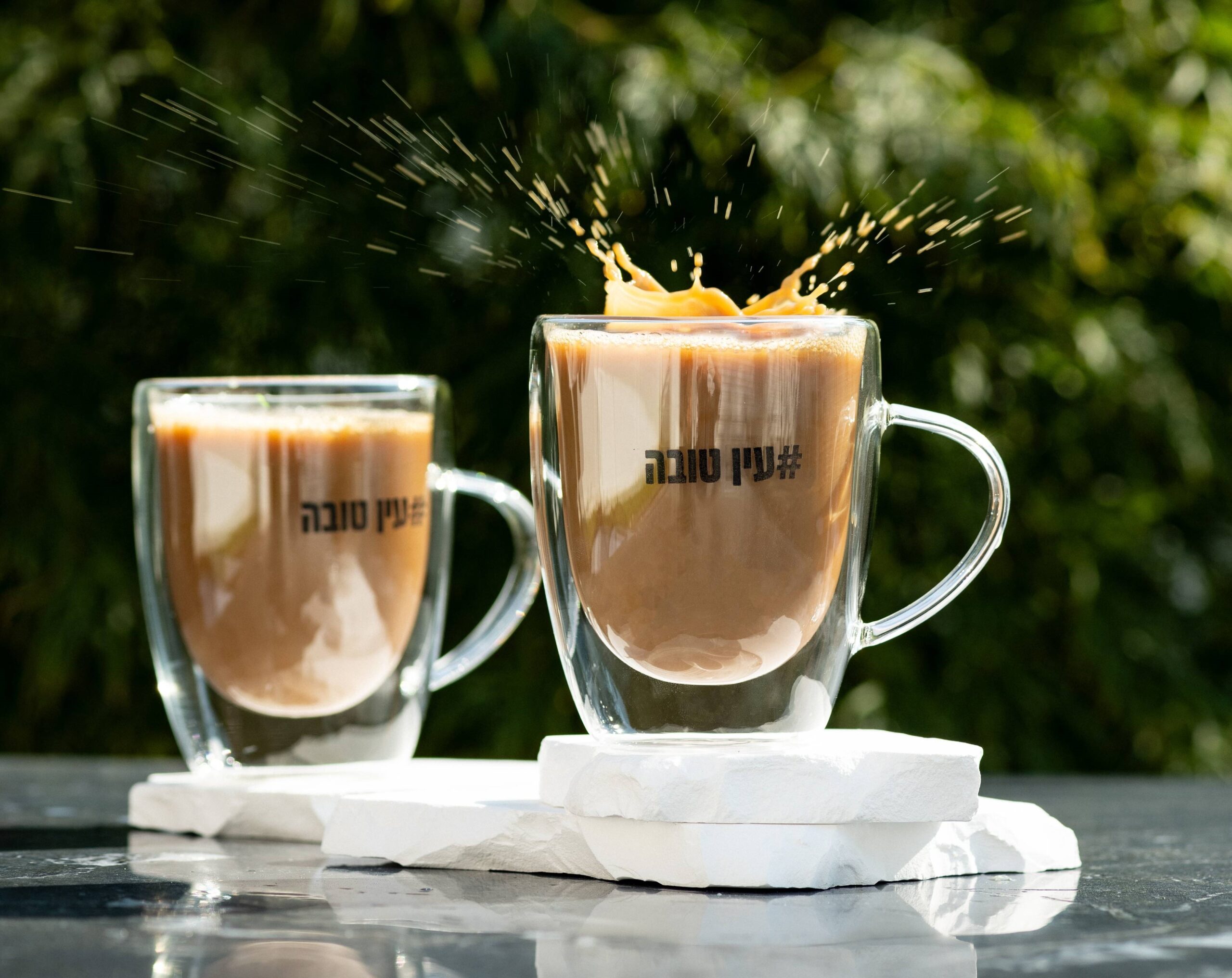 כוסות לשתיה חמה עם כיתוב #עין טובה