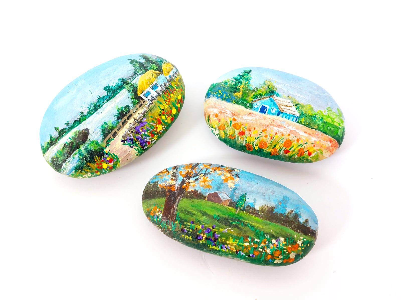 3 אבנים מאוירות באיור אומנותי מיוחד