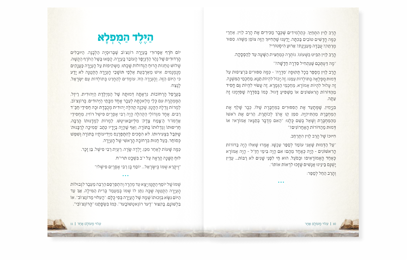 בַּסֵּפֶר שֶׁבְּיֶדְכֶם, מְכֻנָּסִים קוֹרוֹת חַיָּיו שֶׁל הַגָּאוֹן הַמֻּפְלָא, יַחַד עִם מֵאוֹת סִפּוּרִים מְהֵימָנִים מֵחַיָּיו הַמְּרַתְּקִים.